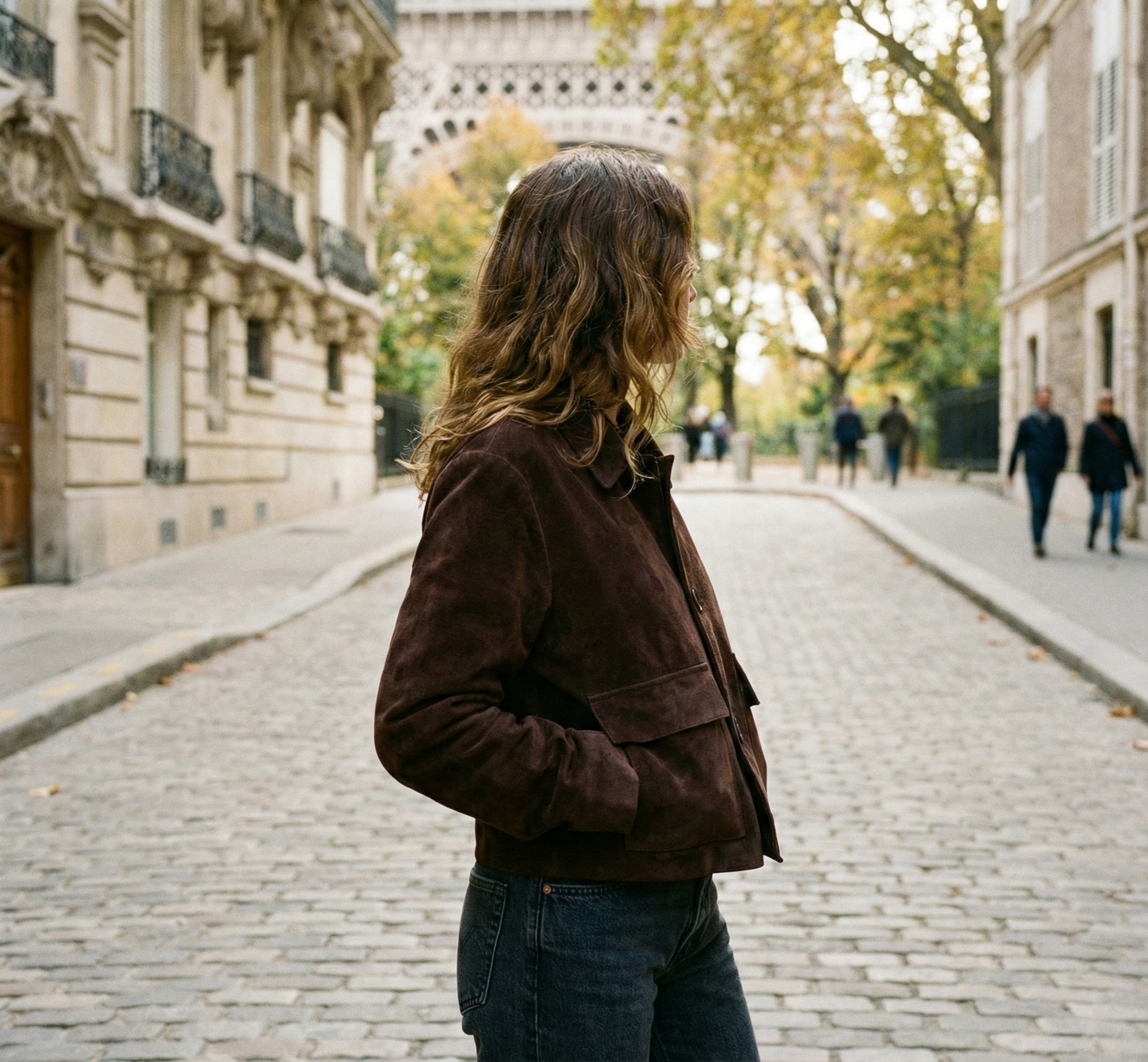 Meet the jacket you will want to wear every single day. It comes in a beautiful dark brown color that looks great on everyone. The fabric feels super soft and smooth, almost like suede.